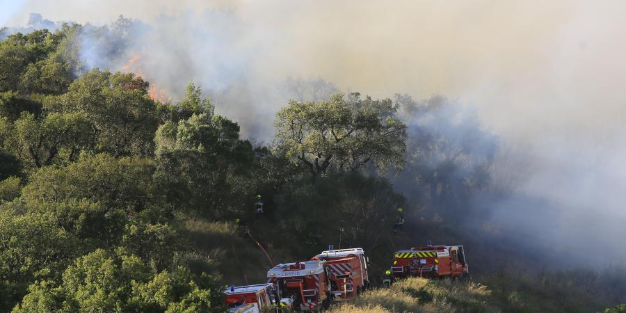 Feu de forêt sur la presqu'île de giens à hyères: